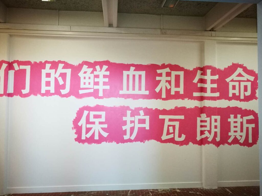 Au moment où l’École des Beaux-Arts de Valence était menacée d’occupation et de réduction de son site, alors que l’ensemble des enseignants et des étudiants s’opposaient à la décision de la municipalité, j’ai écrit en chinois : « Protégeons Valence avec notre vie et notre sang ».